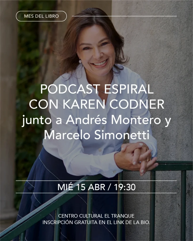 Este miércoles 15 de abril a las 19.30 horas conversaré con Marcelo Simonetti y Andres Montero para Podcast Espiral. Será en el Centro Cultural El Tranque y es totalmente gratuito.